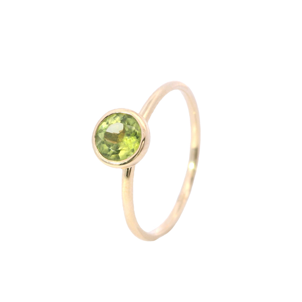 Yellow Gold Round Peridot Bezel Ring