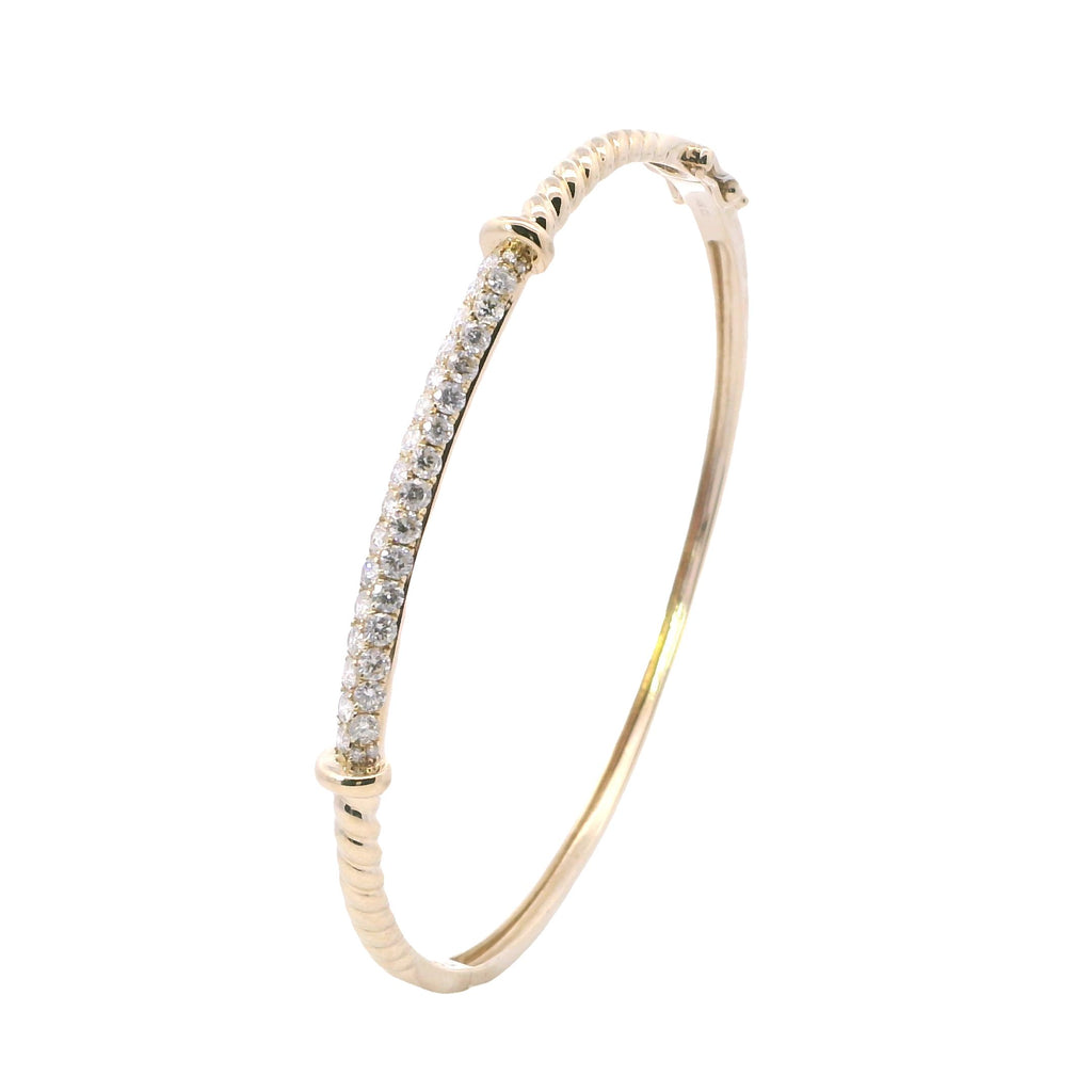 Yellow Gold Twist and Diamond Pave Bar Bangle Bracelet