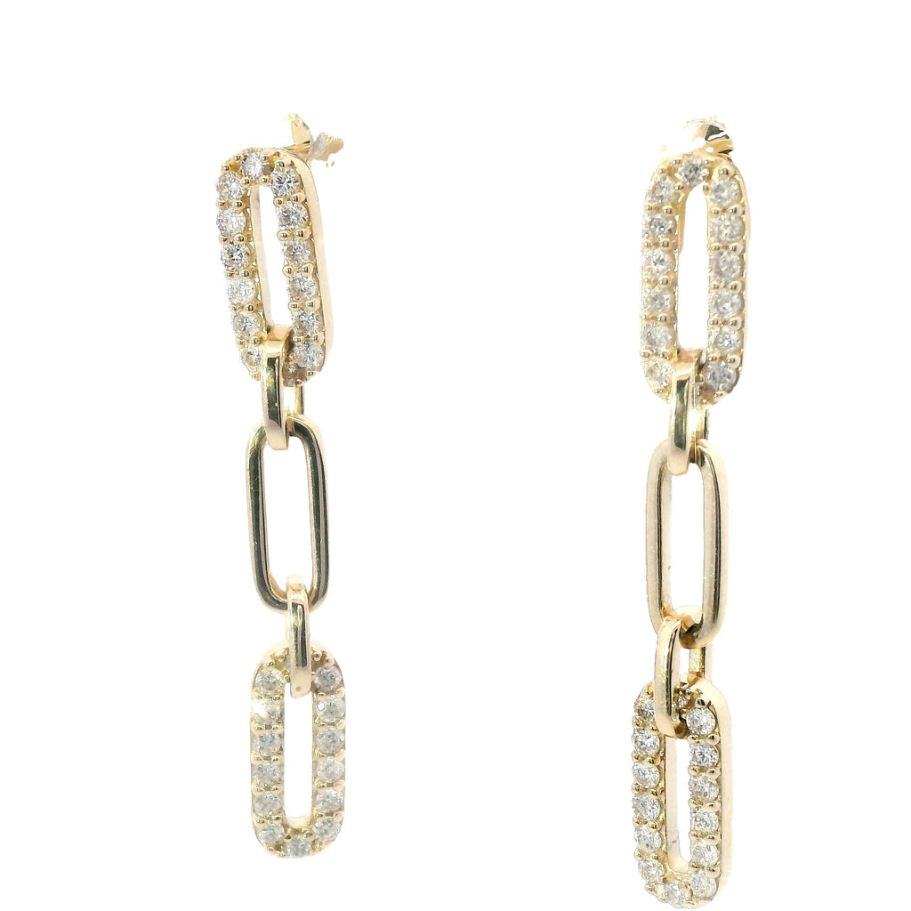 Yellow Gold Paper Clip Dangle Diamond Drop Earrings