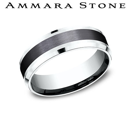 Benchmark White Gold and Black Titanium Bevel Edge Satin Center Wedding Band