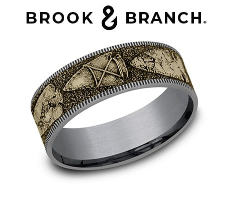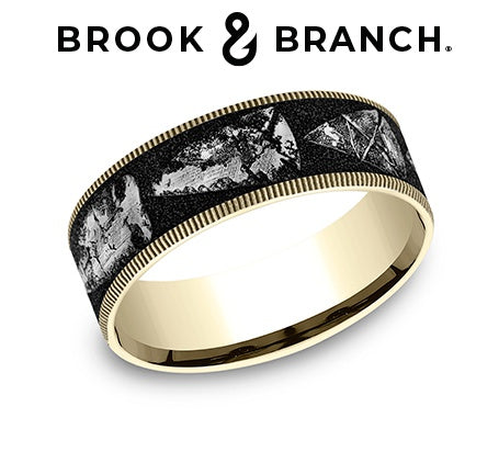 Brook & Branch Yellow Gold and Black Titanium Arrowhead Center Milgrain Edge Wedding Band