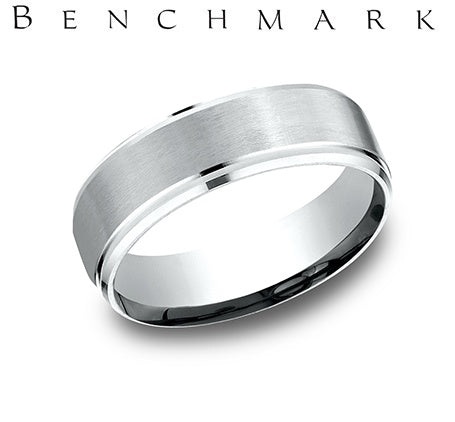 Benchmark White Gold Light Comfort Fit Satin Finish Round Edge Wedding Band