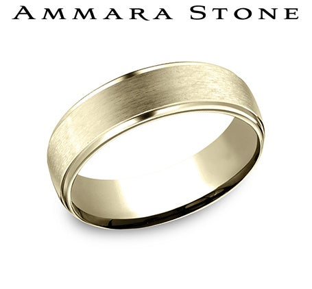 Benchmark Yellow Gold Drop Edge Satin Center Wedding Band