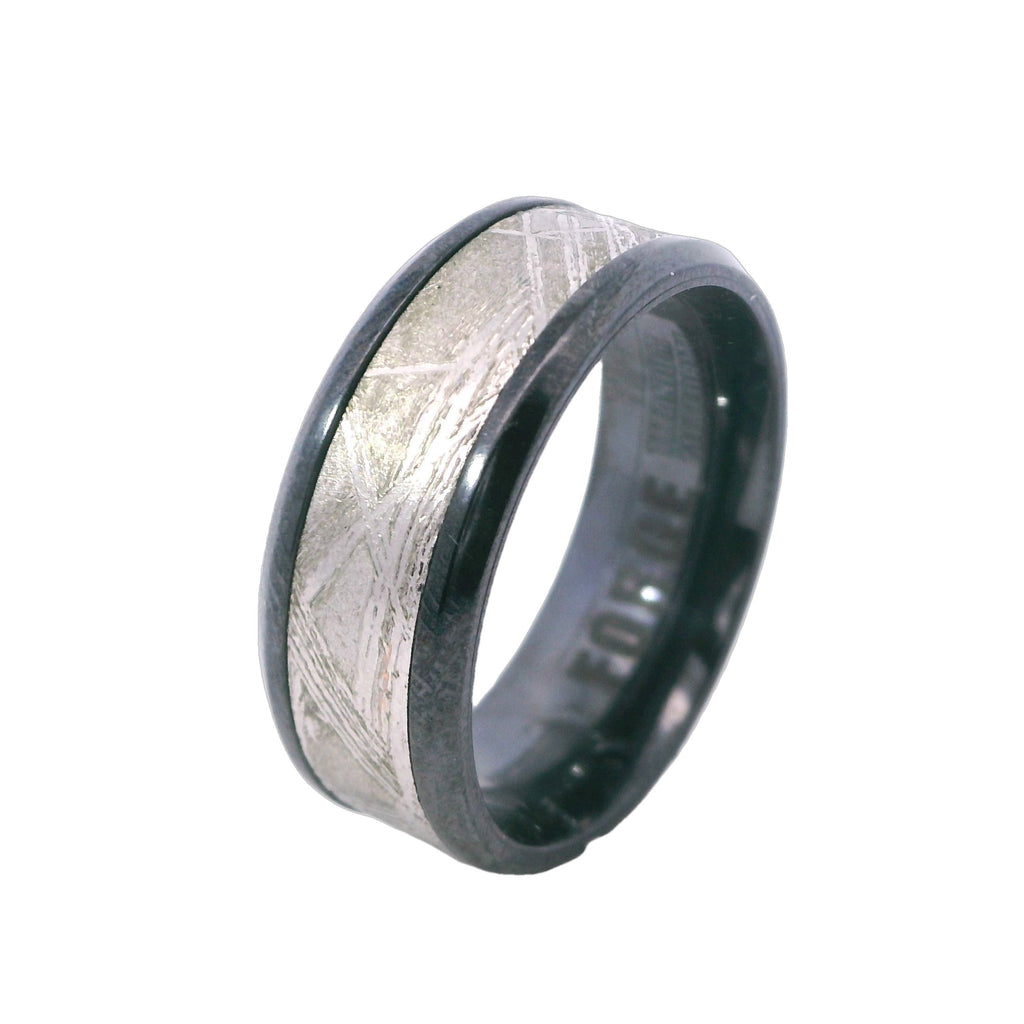 Black Titanium Dropped Bevel Edge With Meteorite Center Wedding Band
