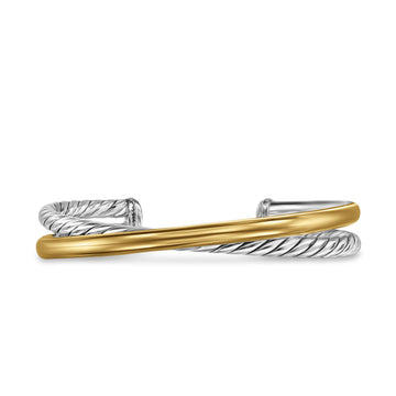 David Yurman Sterling Silver and 14 Karat Yellow Gold 11 mm Bold Crossover 2-Row Bracelet