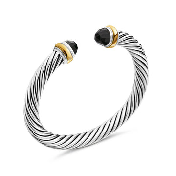 David Yurman Sterling Silver and 14 Karat Yellow Gold 7 mm Classic Cable Black Onyx Bracelet
