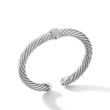 David Yurman Sterling Silver Classic Cable Diamond Station Bracelet with Diamonds