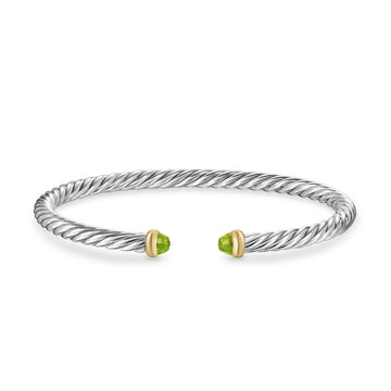 David Yurman Sterling Silver and 14 Karat Yellow Gold 4 mm Cable Flex Peridot Bracelet