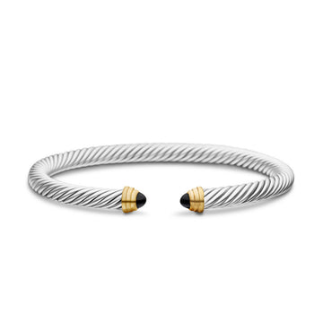 David Yurman Sterling Silver and 14 Karat Yellow Gold 5 mm Classic Cable Black Onyx Bracelet