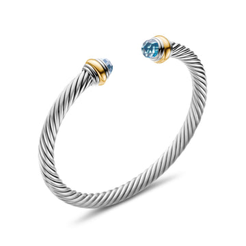 David Yurman Sterling Silver and 14 Karat Yellow Gold 5 mm Classic Cable Blue Topaz Bracelet