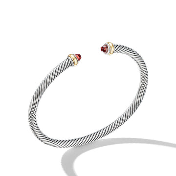 David Yurman Sterling Silver and 18 Karat Yellow Gold 4 mm Garnet Cable Bracelet