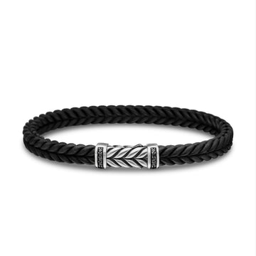 David Yurman Sterling Silver 6 mm Black Rubber Chevron Bracelet with 0.14 Carat Total Weight of Black Diamonds Size L