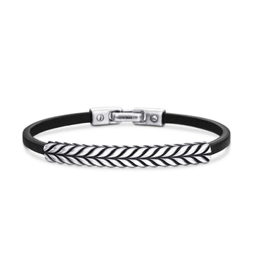 David Yurman Sterling Silver Chevron Leather ID Bracelet