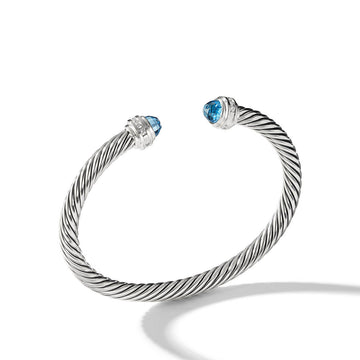 David Yurman Sterling Silver Classic Cable Blue Topaz Bracelet with Diamonds