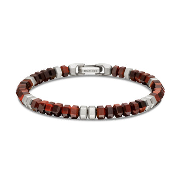 David Yurman Sterling Silver 6 mm Hex Spiritual Red Tigers Eye Bracelet
