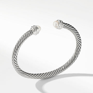 David Yurman Sterling Silver Pearl Classic Cable Bracelet with Diamonds
