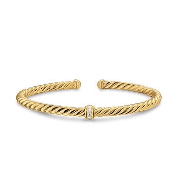 David Yurman 18 Karat Yellow Gold 4 mm Cablespira Flex Center Station Bracelet with 0.079 Total Carat Weight of Diamonds