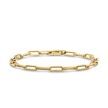 This David Yurman Madison Chain Bracelet is crafted in radiant 18 karat yellow gold and features bold 4 mm links with the brand's signature cable detailing. The alternating polished and twisted links add texture and visual interest, giving the piece a refined yet contemporary look. Secured with a sleek lobster clasp, it offers both style and practicality for everyday wear. Perfect worn solo or layered with other Yurman favorites, this bracelet is a timeless expression of modern luxury.