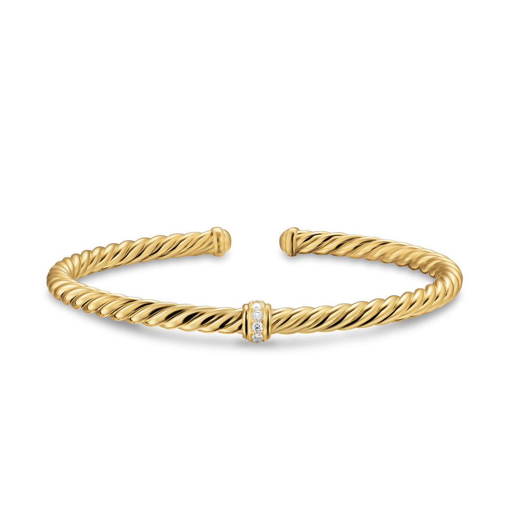 David Yurman Yellow Gold Cablespira Flex Center Station Bracelet with Diamonds