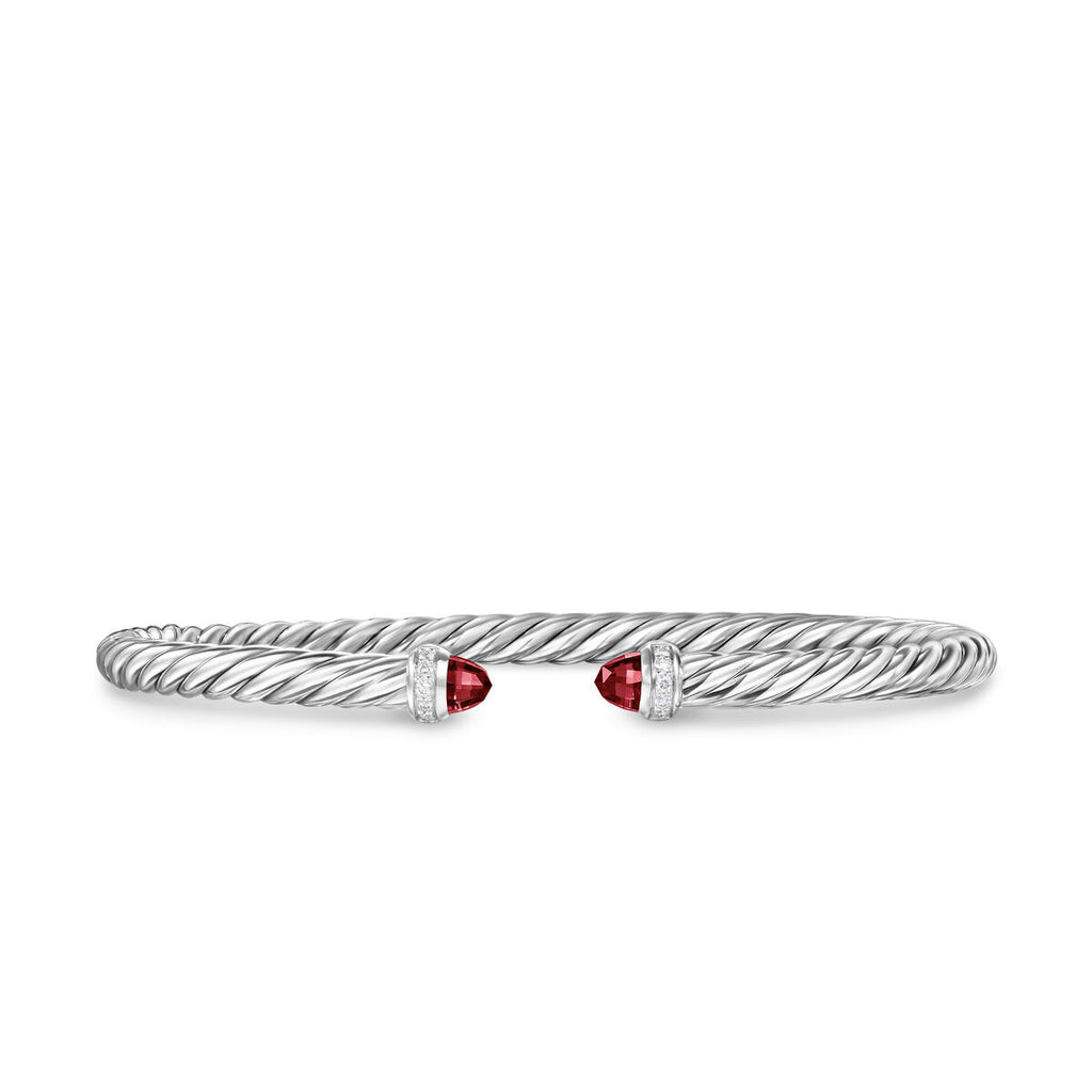David Yurman Sterling Silver Cable Flex Rhodolite Garnet Bracelet with Diamonds