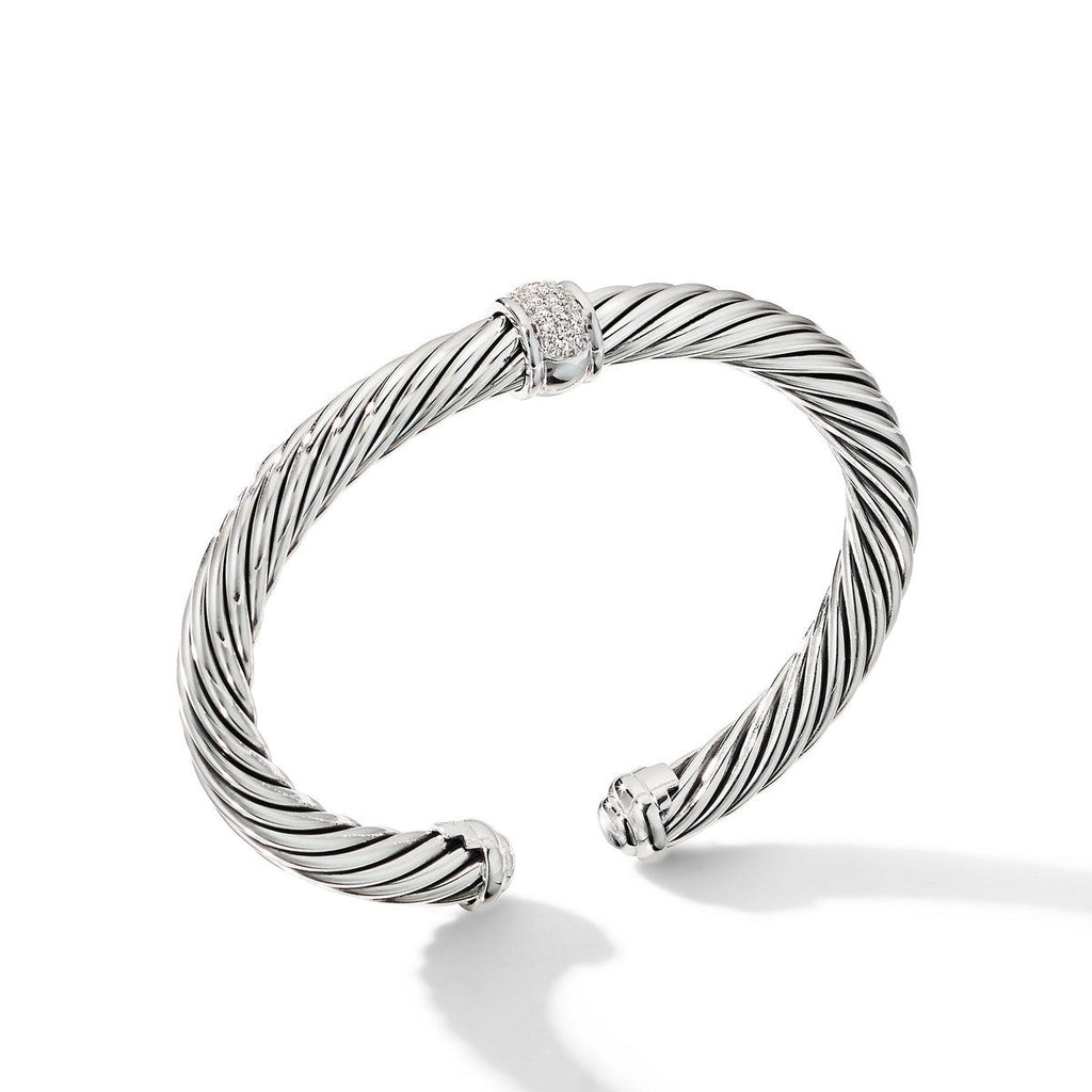 David Yurman Sterling Silver Sculpted Cable Cuff Bracelet with Diamonds