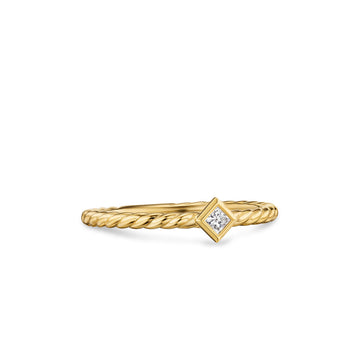 This David Yurman Petite Modern Renaissance Diamond Stack Ring is an adorable addition to the Modern Renaissance collection! Crafted with luminous 18 karat yellow gold, this stack ring features Yurman's classic cabling with a 0.070 carat diamond surrounded by four walls of gold. At 5 mm and a size 7, this ring is perfect for stacking with others or letting it shine on its own!