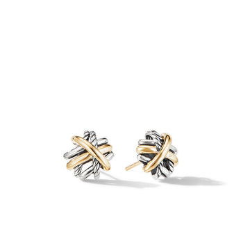 David Yurman Sterling Silver and 18 Karat Yellow Gold Crossover Stud Earrings