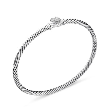 David Yurman Sterling Silver Cable Heart Bracelet with Diamonds