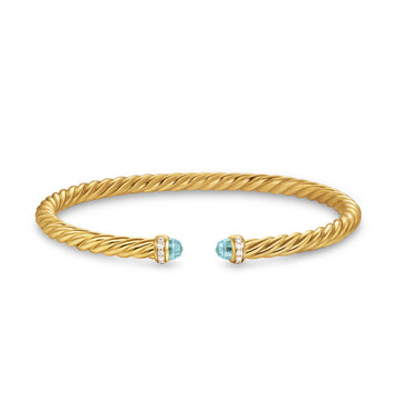 David Yurman Yellow Gold Cablespira Flex Aquamarine Bracelet with Diamonds