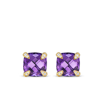David Yurman Yellow Gold Chatelaine Amethyst Stud Earrings with Diamonds