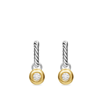 David Yurman Sterling Silver and Yellow Gold Petite Cable Huggie Drop Earrings with Diamonds