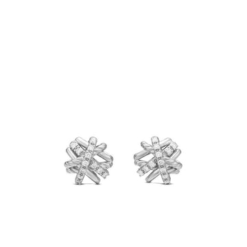 David Yurman Sterling Silver Crossover Stud Earrings with Diamonds