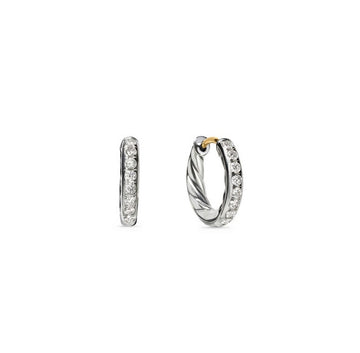 David Yurman Sterling Silver Huggie Hoop Earrings with Diamonds