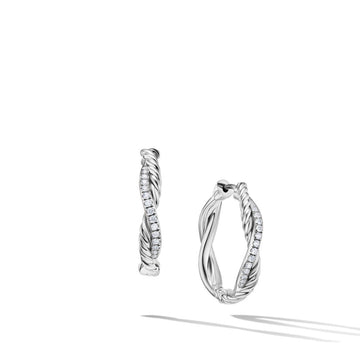 David Yurman Sterling Silver 4 mm Petite Infinity 1" Hoop Earrings with 0.15 Total Carat Weight of Diamonds
