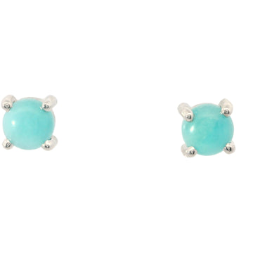 White Gold 5 mm Round Amazonite Cabochon Stud Earrings