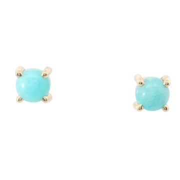 Yellow Gold 5 mm Round Amazonite Cabochon Stud Earrings