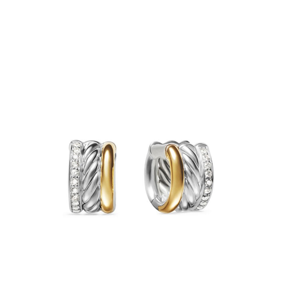 David Yurman Sterling Silver and Yellow Gold Mercer Huggie Earrings with Diamonds