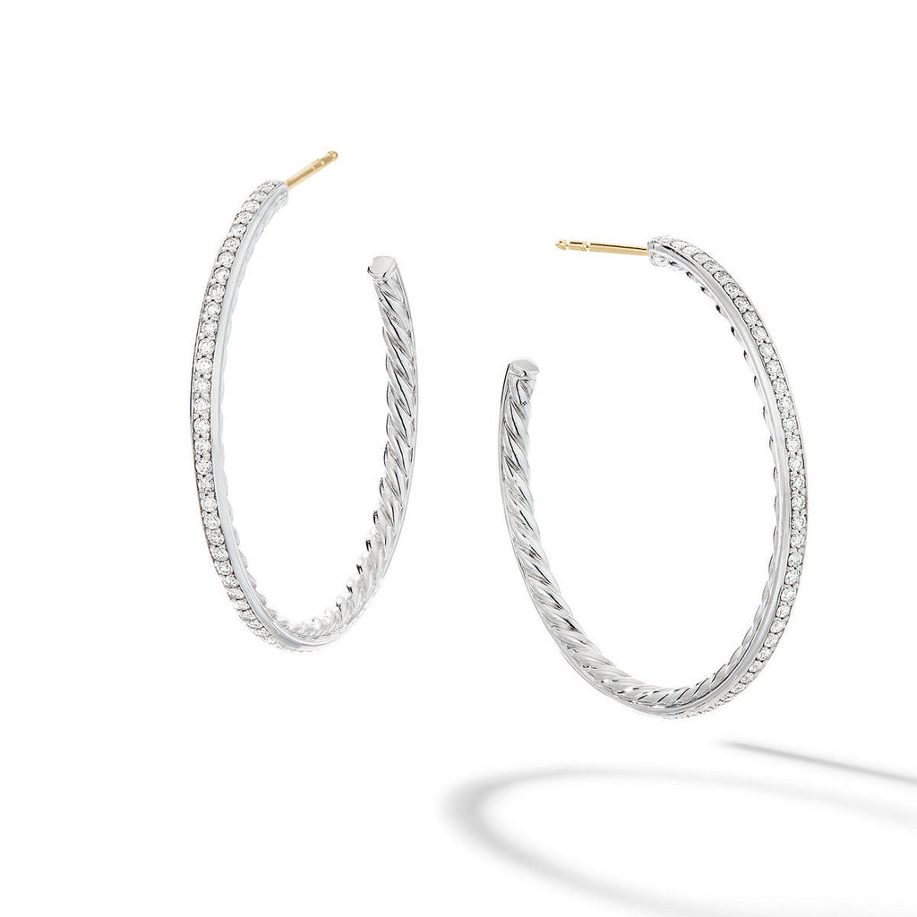 David Yurman Sterling Silver Medium Pave Hoop Earrings