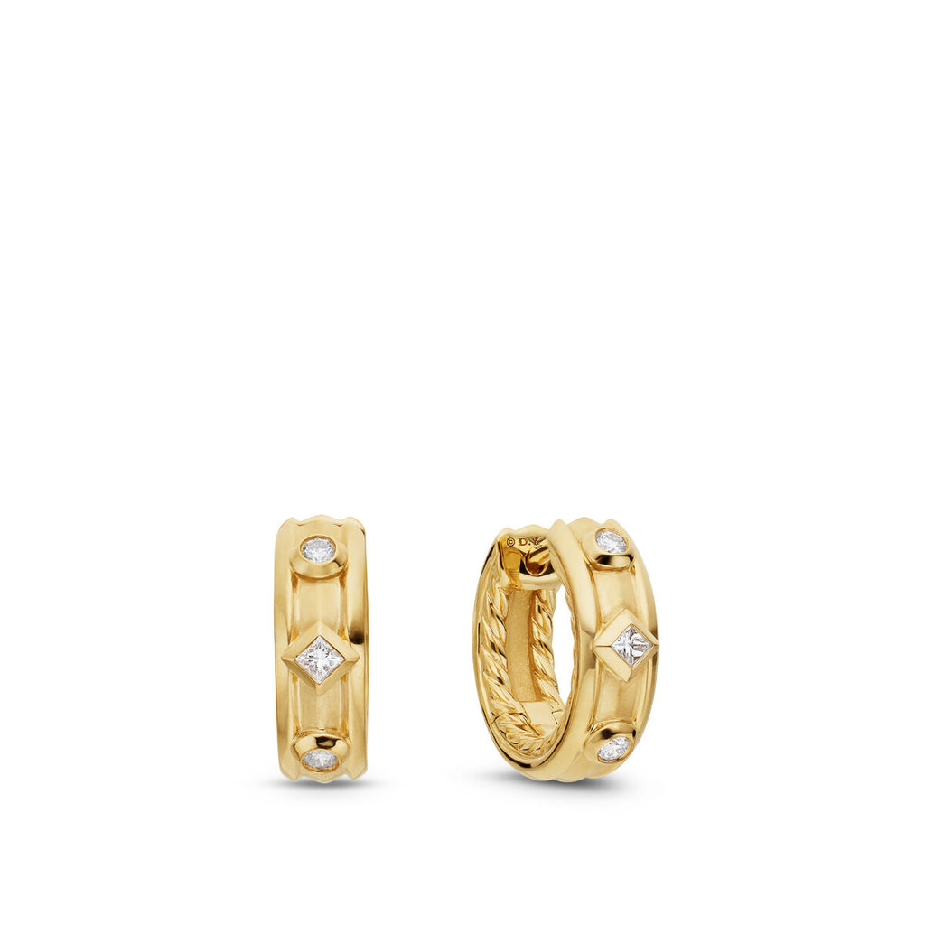 David Yurman Yellow Gold Modern Renaissance Huggie Earrings with Diamonds