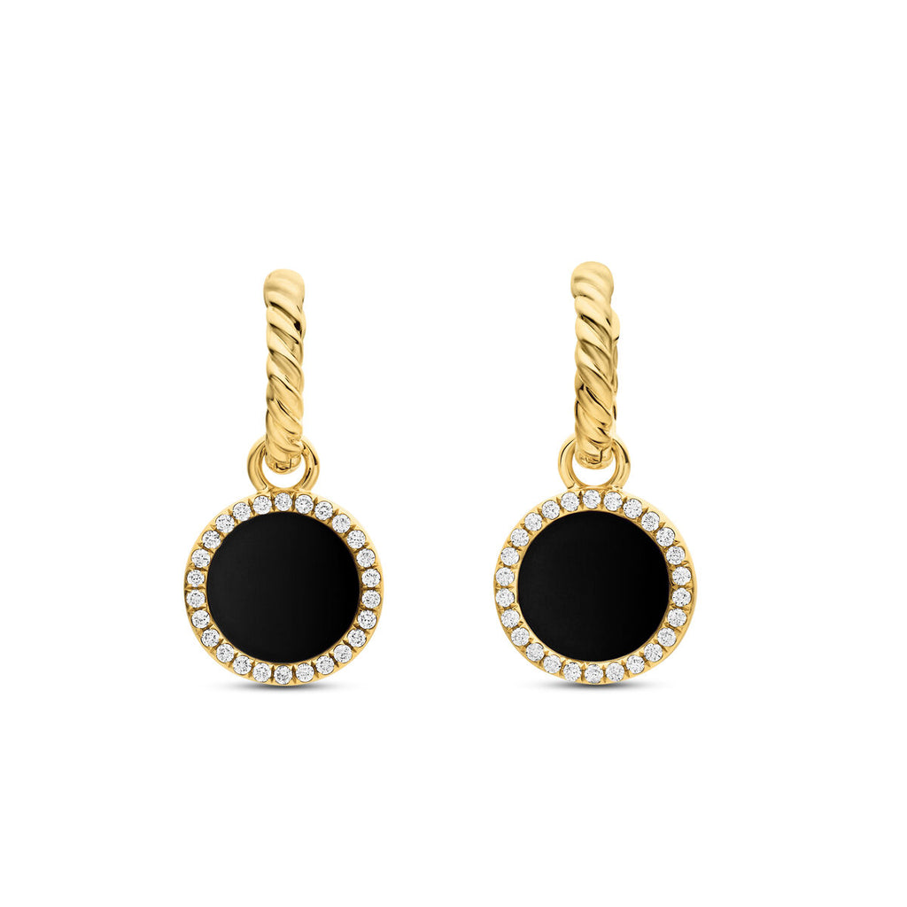 David Yurman Yellow Gold Petite Elements Black Onyx Convertible Drop Earrings with Diamonds
