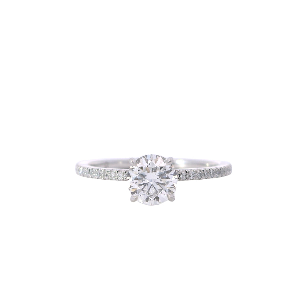 Forevermark Platinum Delicate Icon Diamond Shank Engagement Ring with a 0.71 Carat F VS2 Round Diamond and 0.12 Total Carat Weight of Diamonds