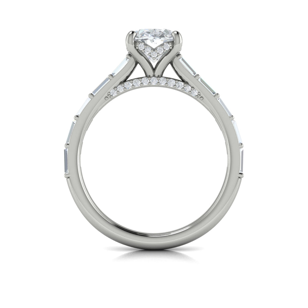 Celebrate your unique love story with the Vlora Baguette Diamond Engagement Ring Mounting. This playful band features sparkling baguette diamonds set in a classic silhouette that’s anything but ordinary. Choose from all colors of 14k and 18k gold or platinum to match your style perfectly. Plus, it’s expertly crafted to fit any size and shape center stone, making it the perfect canvas for your dream ring. Express your fun side while honoring timeless elegance.