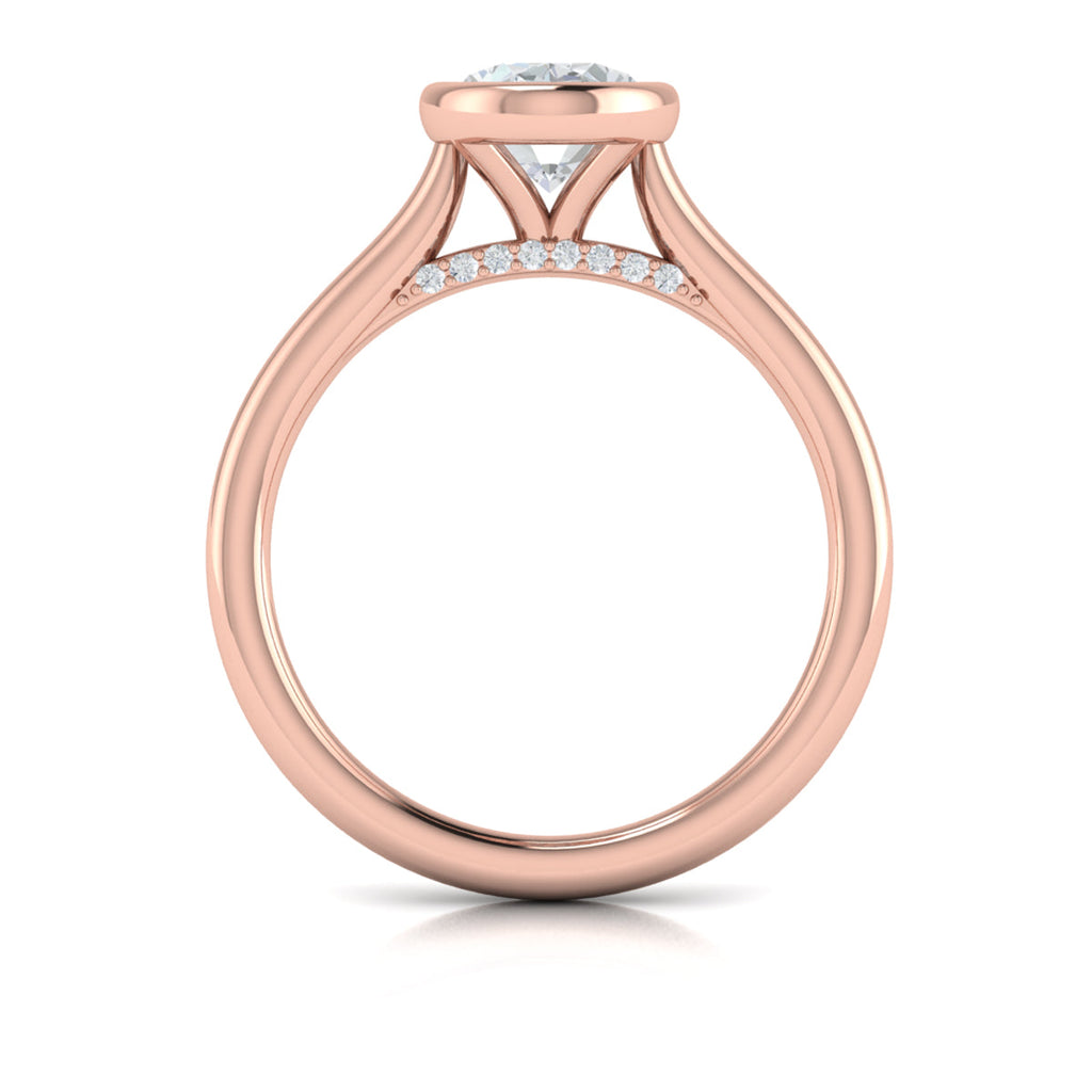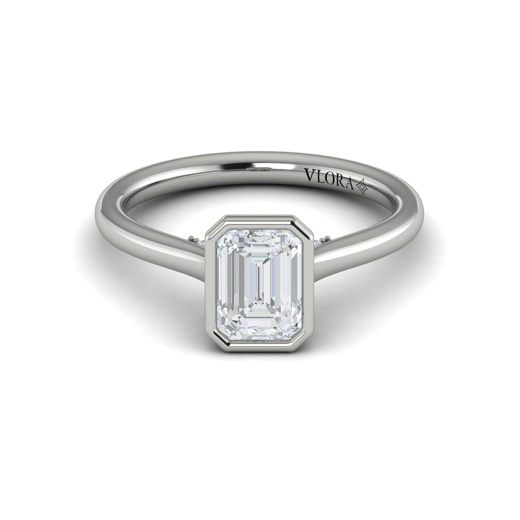 Celebrate your love with the Vlora Bezel Solitaire Engagement Ring Builder—romantic and timeless, designed to keep your precious stone secure within its sleek bezel setting. Choose from all colors of 18k or 14k gold and platinum to craft a ring as unique as your story. Playfully customize your diamond to ensure you create a piece perfect for celebrating your love story.