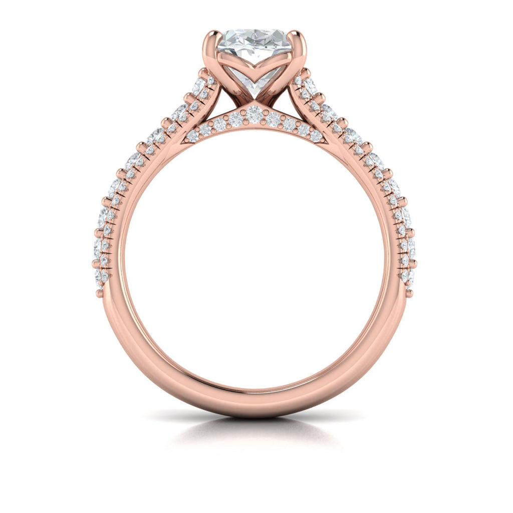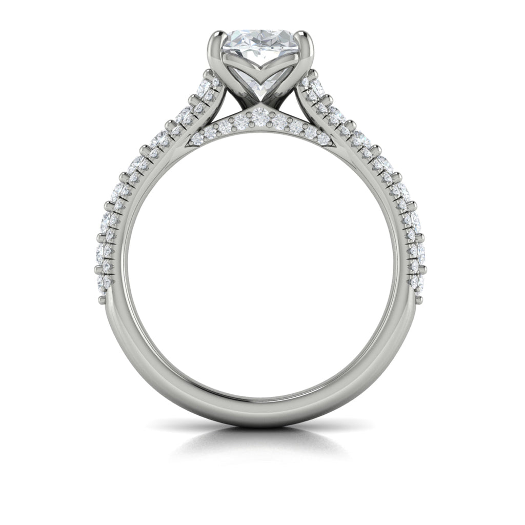 Turn heads with the Vlora Three Row Engagement Ring Mounting, featuring three sparkling rows of diamonds on a bold, thick band. This unique twist on the classic diamond band lets you choose from all colors of 14 and 18 karat gold or platinum, perfectly tailored to fit any center stone size and shape. Ready to design a showstopping symbol of your love? The Vlora ring makes every moment shine a little brighter.