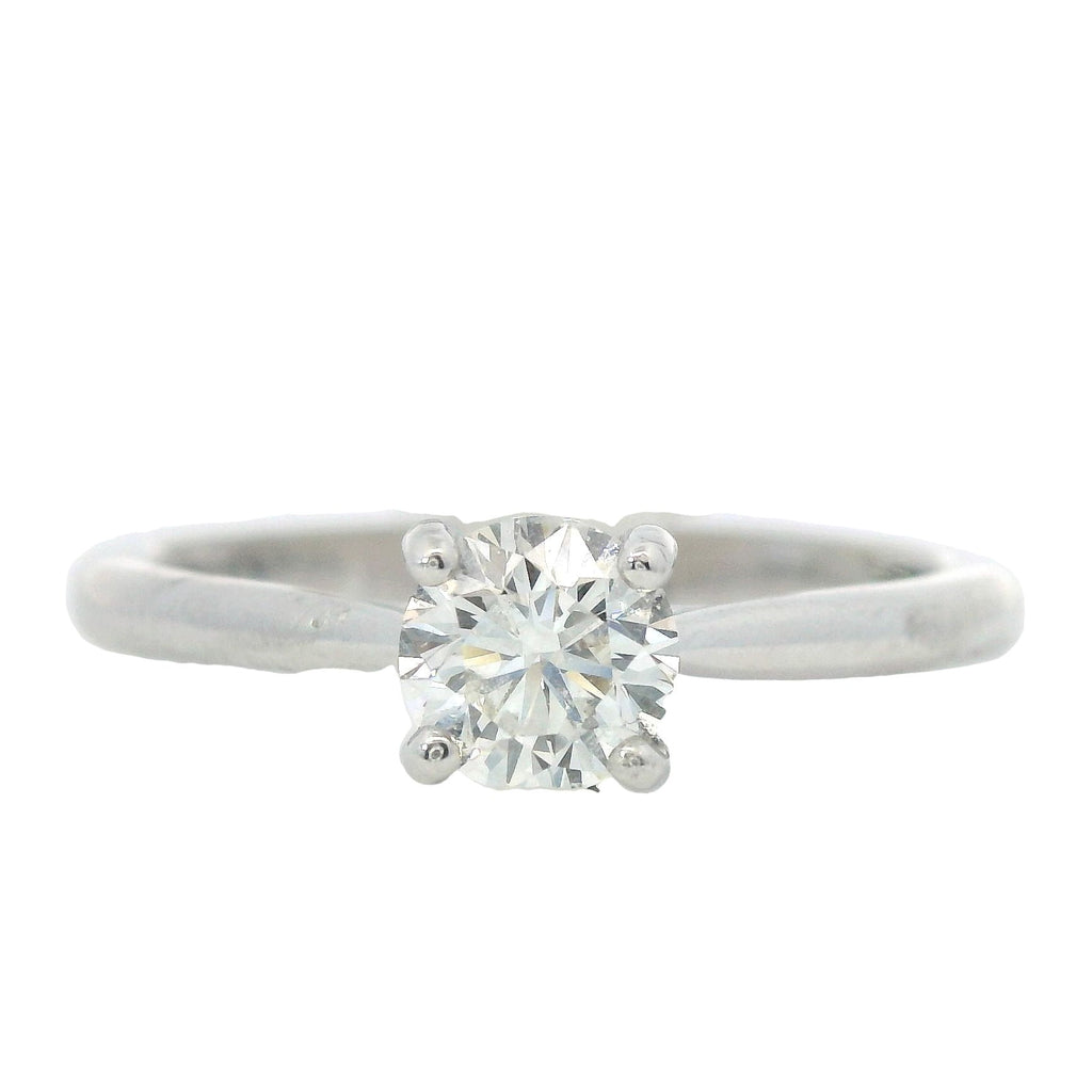14 Karat White Gold Solitaire Round Maurer Star Center Diamond Engagement Ring with a 0.50 Carat E VS2 Center Diamond