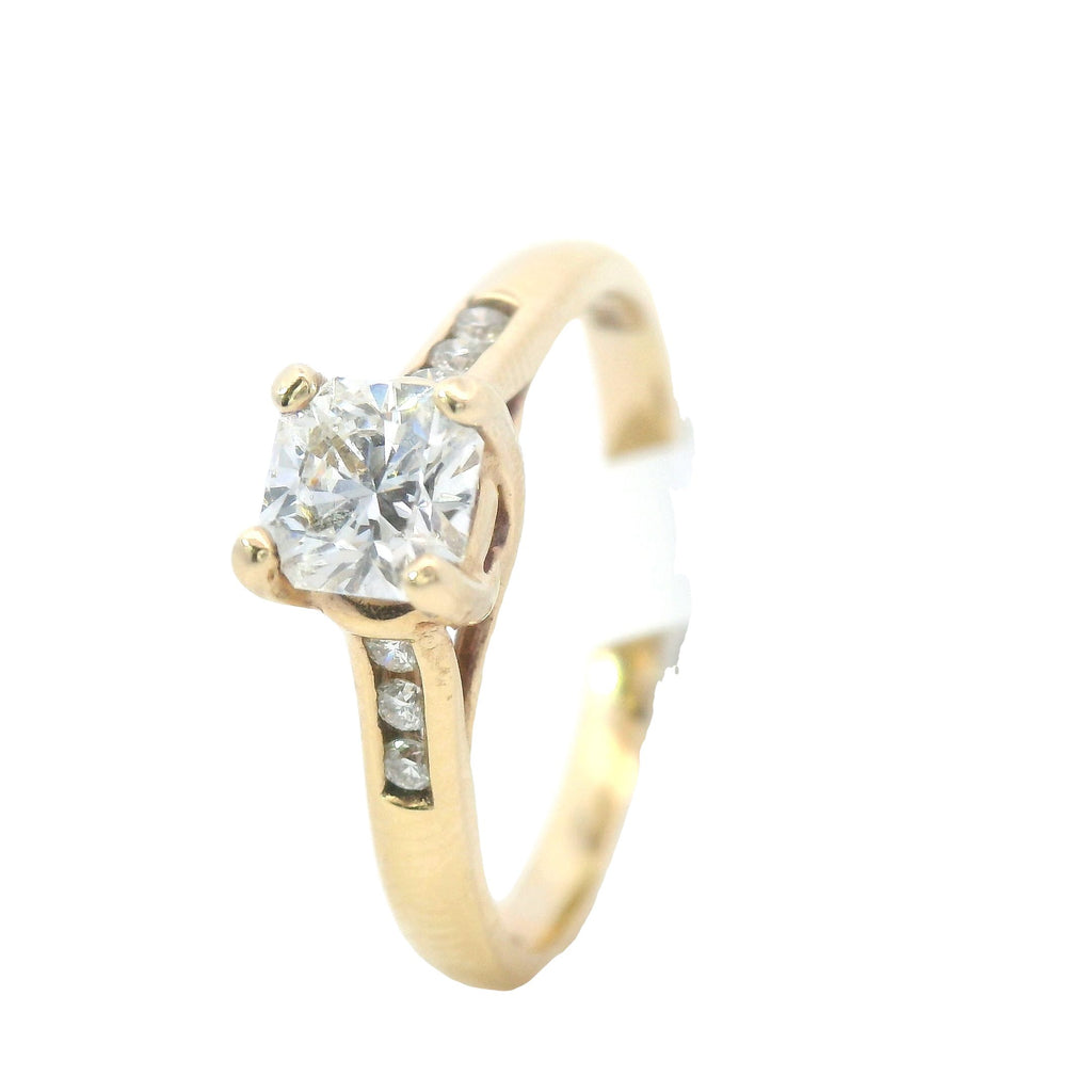 Yellow Gold Channel Set and Cushion Cut Center Diamond Engagement Ring