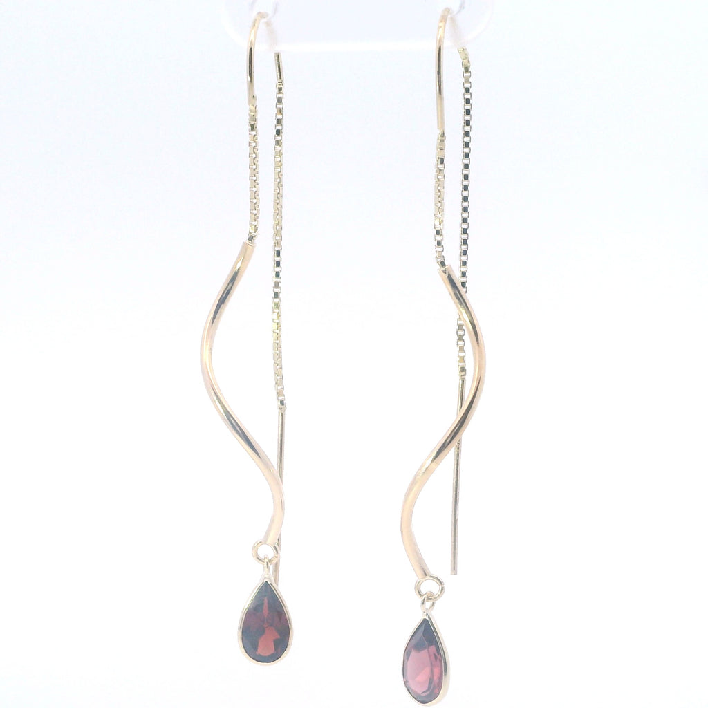 Estate 14 Karat Yellow Gold Pear Garnet Threaded Drop Earrings