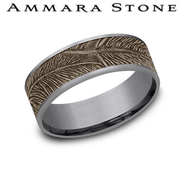 Ammara Stone 14 Karat Rose Gold and Gray Tantalum 7.5 mm Feather Center Wedding Band Size 10