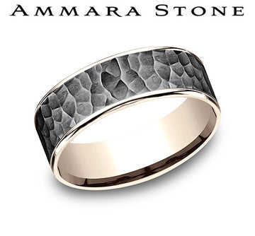 Ammara Stone 14 Karat Rose Gold and Gray Tantalum 7.5 mm Satin Hammered Center Wedding Band Size 10