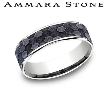 Ammara Stone White Gold and Gray Tantalum Honey Comb Center Wedding Band